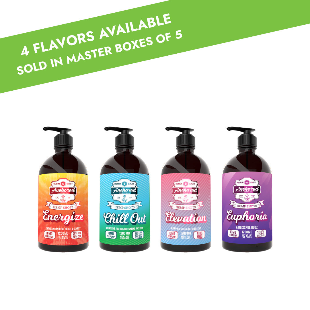 Enjoy them straight or add them to your favorite drink for a custom boost. Choose Chill Out for deep relaxation and anxiety relief (CBD, CBG, CBN), Elevation for euphoric calm with 100% HHC, Energize for mental clarity and motivation (CBD and CBG), or Euphoria for a blissful Delta 8 buzz. However you sip it, Anchored Hemp Shots make it easy to feel good—anytime, anywhere.